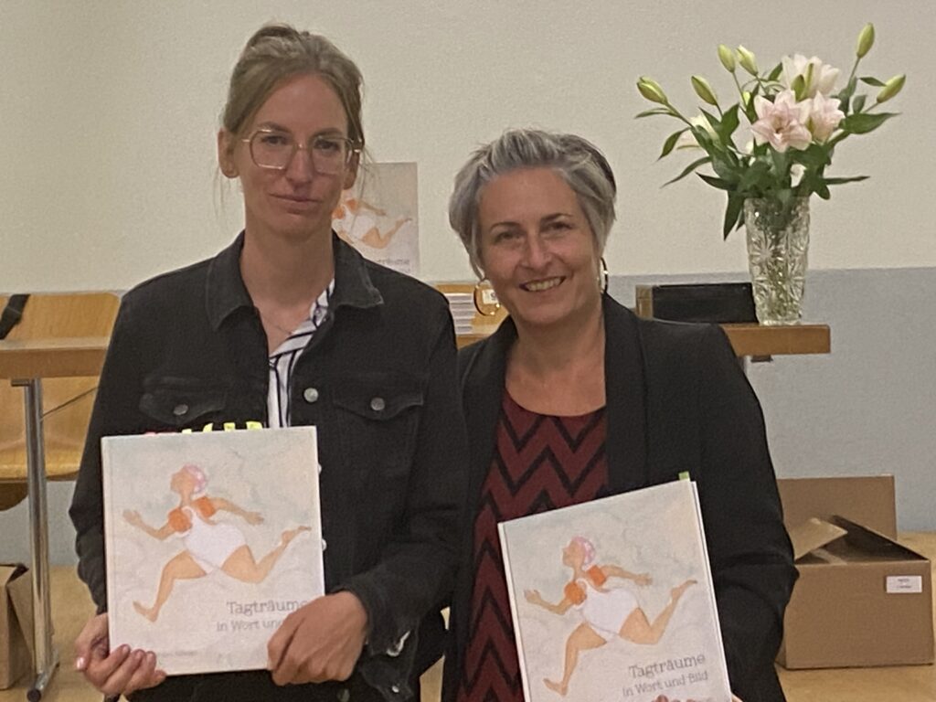 In Zusammenarbeit haben Alexandra Imhof Amodeo und Fabienne Escher „Tagträume“ entstehen lassen. Es sind dies fröhliche, traurige oder auch nachdenklich stimmende Bild-Text-Kombinationen. Alexandra Imhof Amodeo hat bis anhin vor allem auf Leinwand gemalt und auf Alteisen, kaum jemals auf Papier. Eigentlich ist das Malen auf Papier das Kindlich-Ursprüngliche. So hat die Malerin für „Tagträume“ lustvoll den Weg zurück zu Papierarbeiten beschritten. Fabienne Eschers lyrische Texte können einzeln für sich stehen oder auch zusammen mit einem Bild als Einheit wirken.